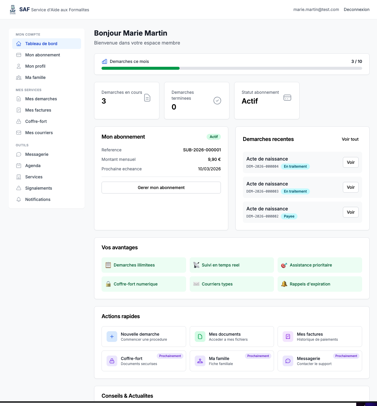 Suivez vos démarches, consultez vos documents et accédez à tous vos services depuis un seul espace.